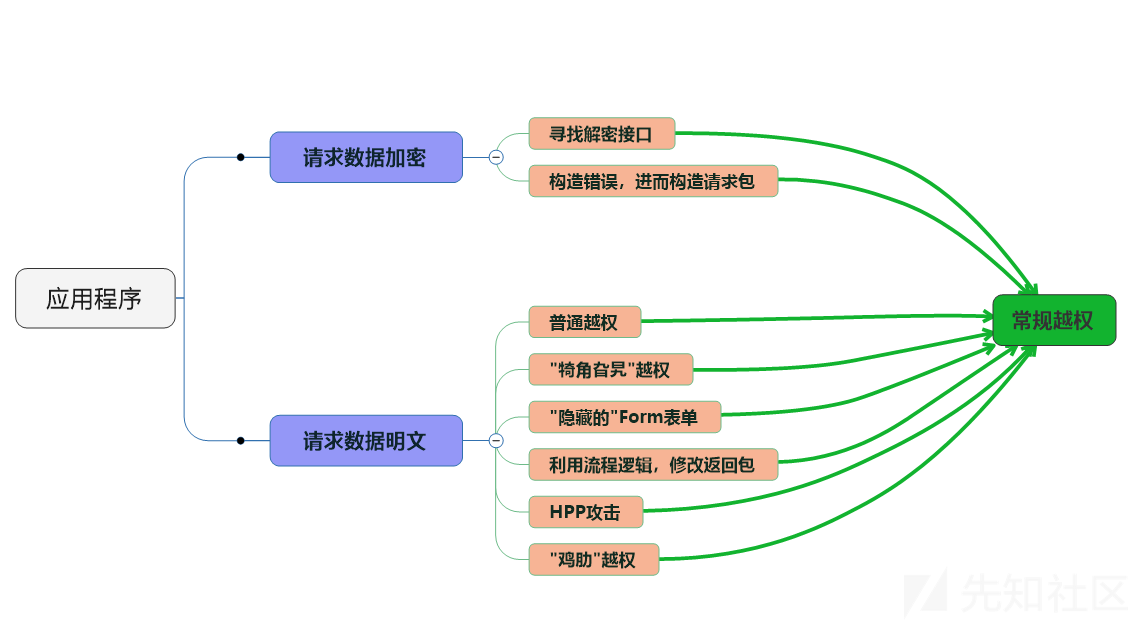 自己尝试根据这两篇文做了个流程图,每个方式方法的最终归属看起来都还是回归到了常规越权,希望下次我还能发现不一样的问题来分享。